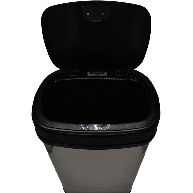 Tento automatický koš je hygienickým řešením pro každodenní použití. Díky inovativní senzorové technologii jej můžete otevřít pouhým pohybem ruky. Stačí přetáhnout ruku 15-25 cm nad čidlo na horní straně koše a koš se sám otevře. po 5 sekundách se víko automaticky samo zavře. Pokud senzor zaznamená pohyb, víko se nezavře. Koš má kapacitu 50 litrů. Provoz: napájen 4 D bateriemi, což znamená přibližně 3 měsíce nepřetržitého provozu. Díky svému čistému designu je vhodný pro kancelářské i soukromé použití.