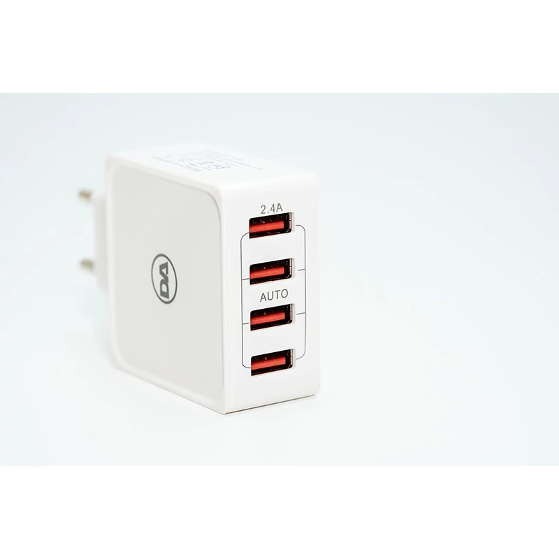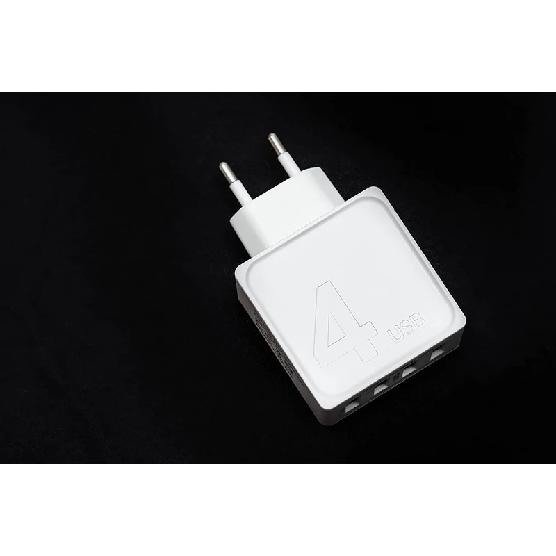 Výkonná nabíječka se čtyřmi různými výstupy USB pro nejmodernější zařízení! Podporuje rychlé nabíjení s maximálním nabíjecím proudem 2,4 A. Port USB lze připojit k jakémukoli kabelu USB, takže ji můžete používat s kabely Type-C, micro USB nebo dokonce Lightning.