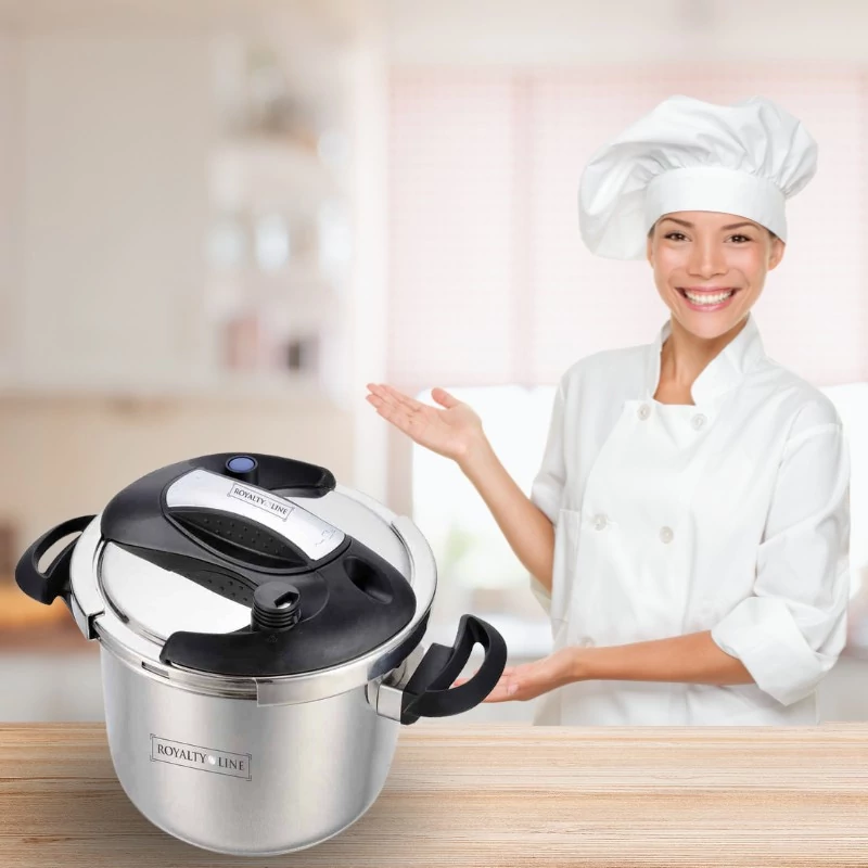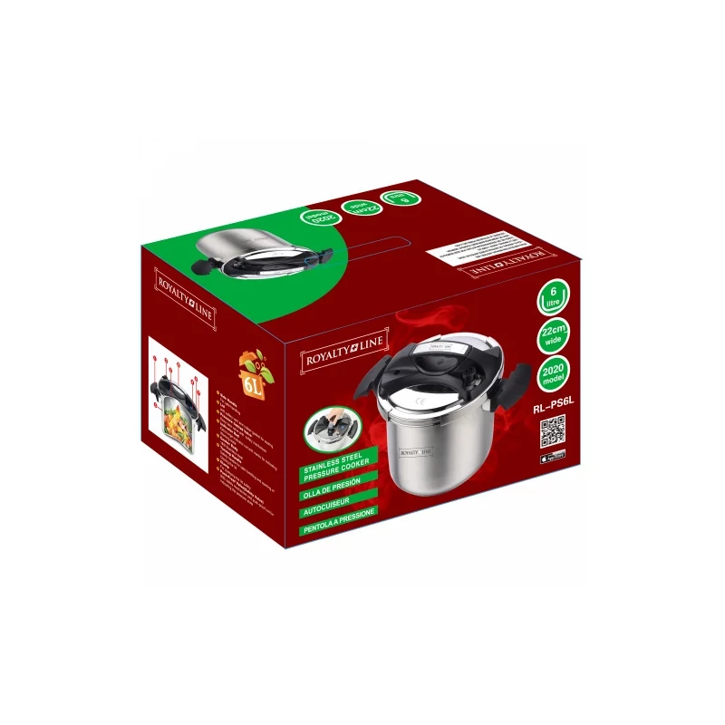 NovýRoyalty Line, 6litrová konvice z nerezové ocelisnadno a rychle připravíte i ty časově nejnáročnější pokrmy. Guláš uvaříte za pouhých 20 minut, čímž zajistíte, že se v jídle během dlouhé doby vaření zachovají všechny vitamíny. ARL-PS6L vaše bezpečnost je zaručena. S vařením si již nemusíte dělat starosti, protože se velmi snadno používá a má také vysokotlaký indexový ventil a bezpečnostní mechanismy. Aobjem 6 litrů poskytuje mimořádnou praktičnost pro každodenní použití.