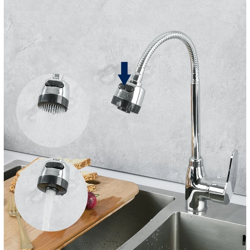 Jeho zvláštností je, ževodní paprsek lze nastavit ve dvou intenzitách, a to ve tvaru rozprašovače, jeden je rychlý, silnější a rovnoměrný proud vody, který umožňuje rychlejší naplnění dřezu, zatímco druhý je rozstřikovač s funkcí stříkání. Ten lze použít k nabízí také možnost šetřit vodou. Vhodné pro prodloužení menších kohoutků pro snadnější přístup ke vzdálenějším dřezům. Má dvě gumová těsnění pro ochranu proti úniku vody. Rychle a snadno se instaluje a lze jej namontovat místo původního výtoku.