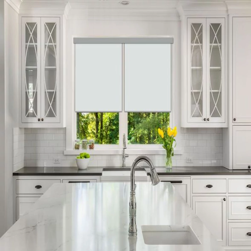 Univerzální rolety prémiové kvality, které lze dodatečně namontovat na okna a dveře, ale mohou také fungovat jako jednoduchý oddělovač. Jeho pevná bílá barva se perfektně hodí do každého prostředí. Rolety jsou umístěny v bílém kovovém pouzdře, takže i po namontování působí esteticky a čistě. Rolety lze posouvat pomocí korálkového řetízku na boku, který lze dokonce podle potřeby upevnit pomocí přiloženého držáku. Ve spodní části rolety je kovová výztuha, díky které má stažená roleta hladký, nemačkavý povrch a lze ji při pohybu rovnoměrně navíjet nebo stahovat.