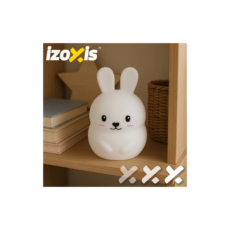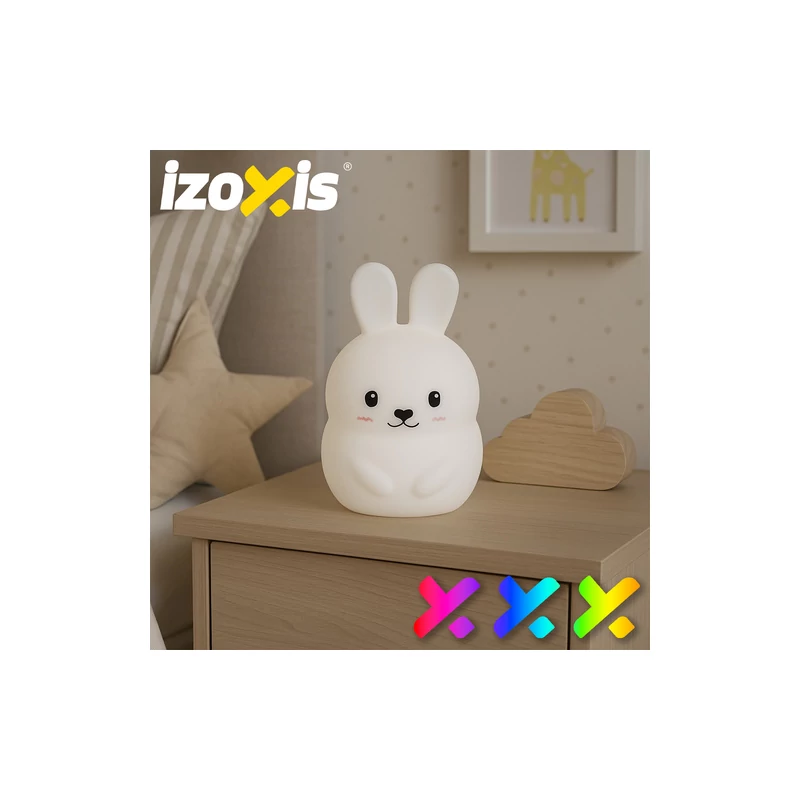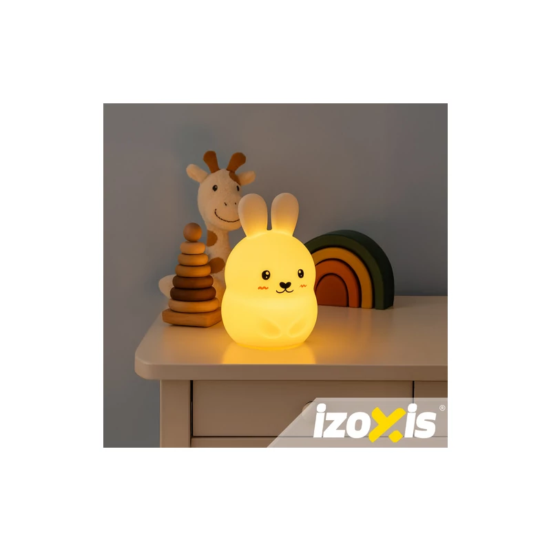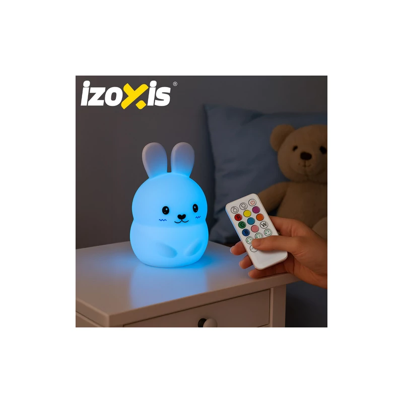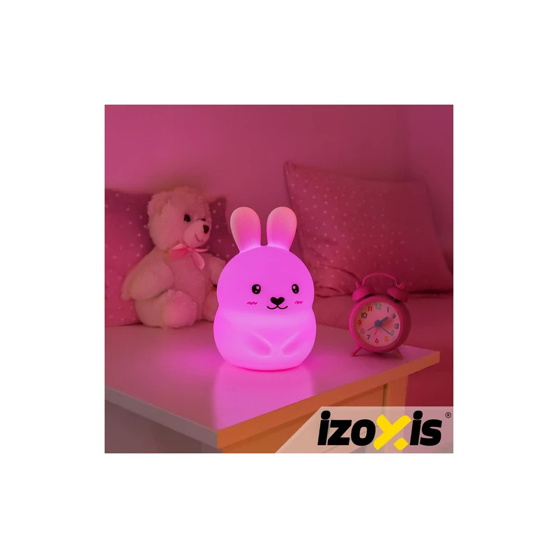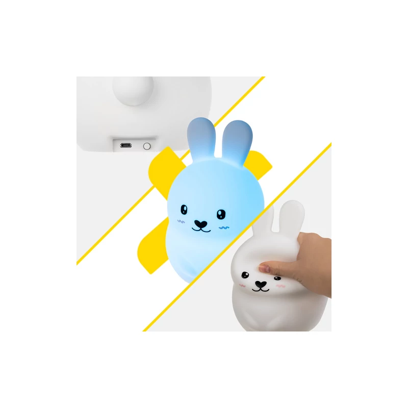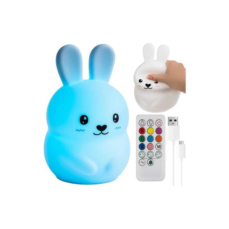 Rabbit LED interaktivní měnící barvy RGB noční lampička pro děti ve tvaru králíčka, s dálkovým ovládáním světelných efektů a časovačem, silikon